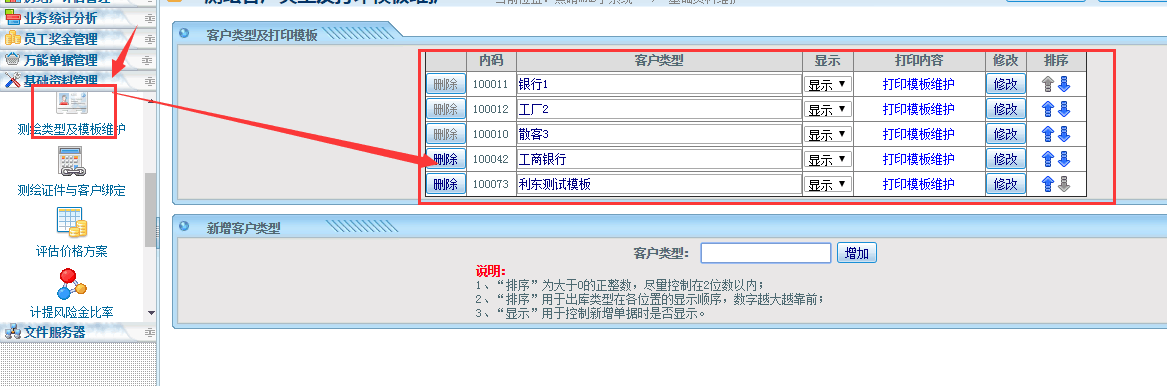 MAS——基础资料管理——测绘类型与模板维护;如下图所示: