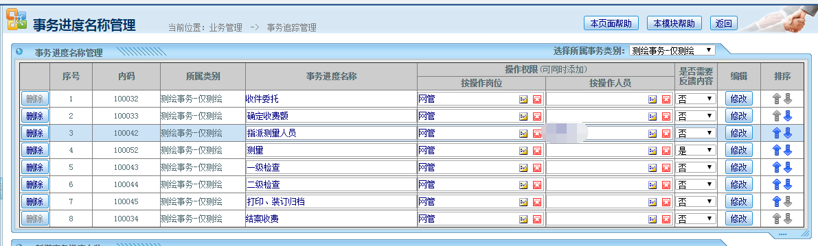 最终查询到原因,事物进度“一级测量”“二级测量“之前删除过,后来又新建了同样名称的步骤才导致显示重复