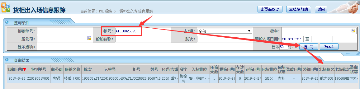 进入页面后用对应的柜号或运单号查询即可,如下图:
