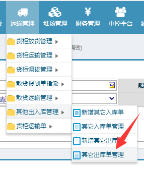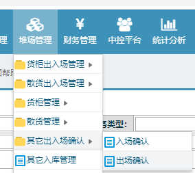 操作步骤:堆场管理-其他出库场确认-出场确认,如下图:
