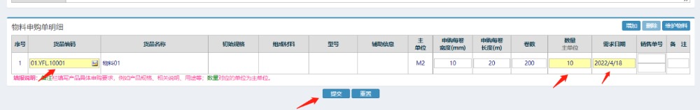 1. ”采购管理-->申购单管理-->新增申购单”(如图1),在本页面填写好相关信息,点击”提交”即可.(如图2)