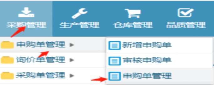 2. 如果没有设定审核的话,在”采购管理-->申购单管理-->申购单管理”