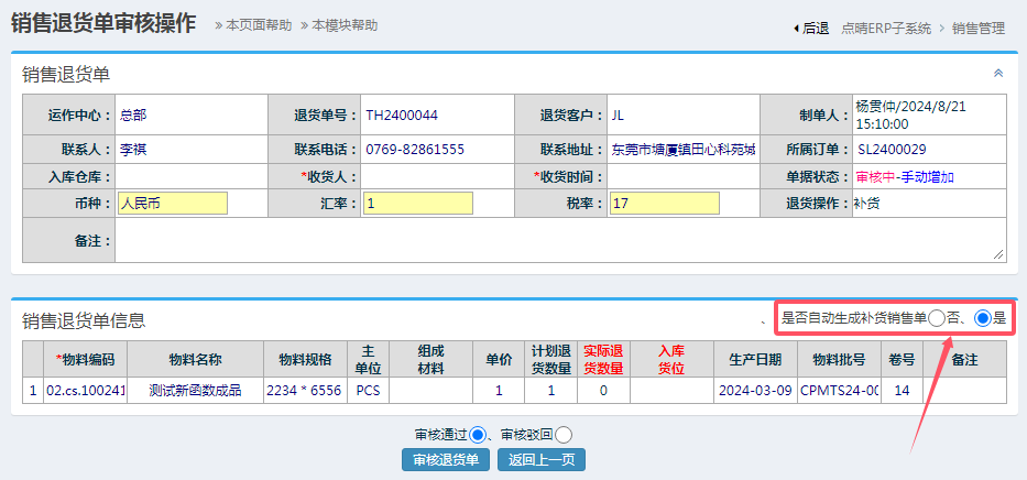 :【点晴模切ERP】系统发生退货之后怎么下推生成补货单?