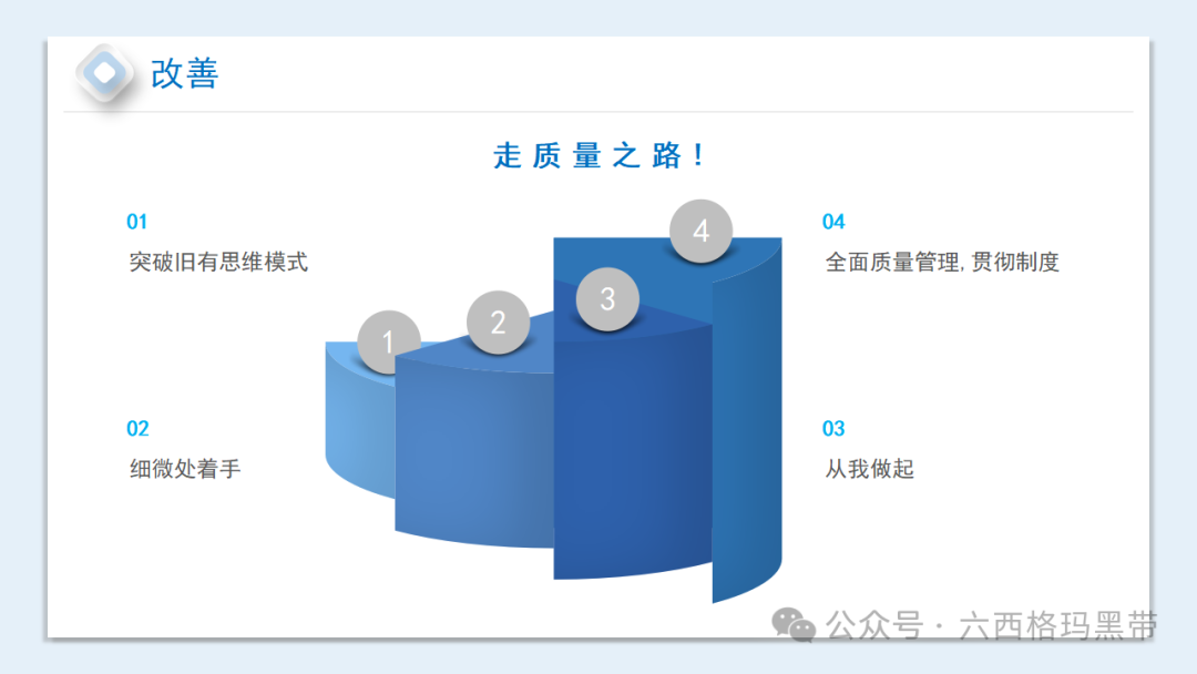 持续改进是质量提升的关键。我们不能满足于现状,而要不断寻找改进的机会。例如,通过定期的质量审核,发现生产过程中的问题,并采取措施进行改进;通过员工的建议和反馈,不断优化生产流程和产品质量。持续改进需要我们全员参与,每一个人都要树立质量意识,积极提出改进建议。