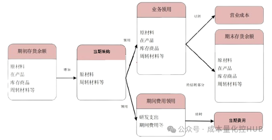 勾稽关系: 从如下的采购、存货间与主营业务成本的勾稽关系可以了解整个脉络,实际操作中的原则不一致,剔除项和加回项等很容易导致成本倒扎表扎不平: