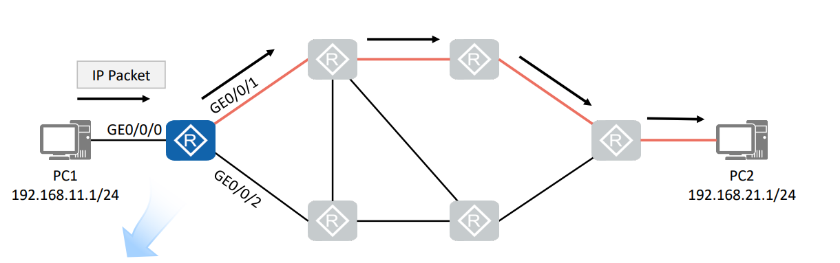当路由器收到一个IP数据包,路由器会根据数据包的目的IP地址查找FIB(ForwardingInformation Base,转发信息库)表,找到“最匹配”的路由条目后,将数据包根据路由条目所指示的出接口或下一跳转发出去。