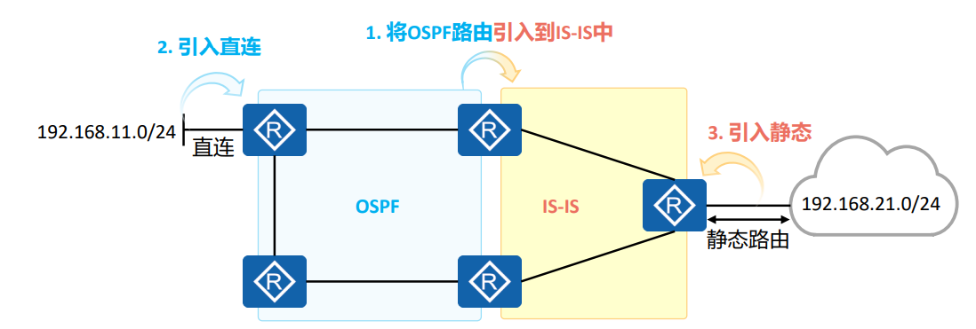 通过路由引入,可以实现路由信息在不同路由协议间传递。