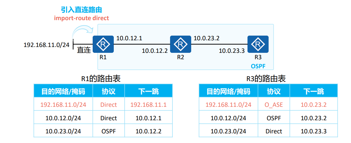 引入后的路由会作为OSPF外部路由,在整个OSPF网络内通告。