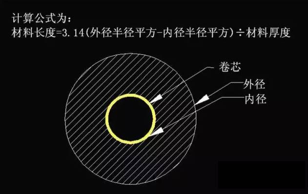 所以,材料长度 L=3.14(外径半径平方 R²-内径半径平方 r²)÷材料厚度 C
