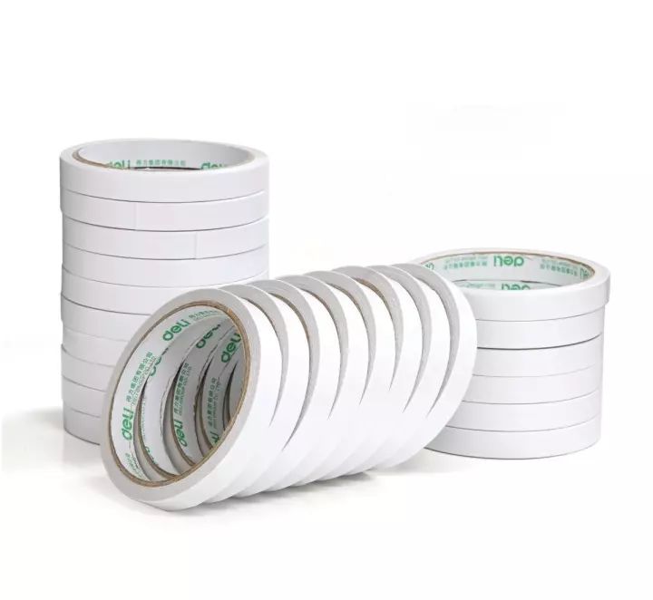双面胶,从存在形态上讲能分为二种,一为无基材、一为有基材。无基材是将胶水直接涂布在离型纸上,一般很薄,有很大的延伸、柔韧性,模切加工时易回粘、变形。如3M 468、467。有基材的就是在一层 PET膜、棉纸或不织布上双面涂布胶水。