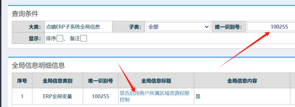进入界面后,唯一码栏位搜索100255,以及100254,点击蓝色字体,进入界面,选择启用,提交