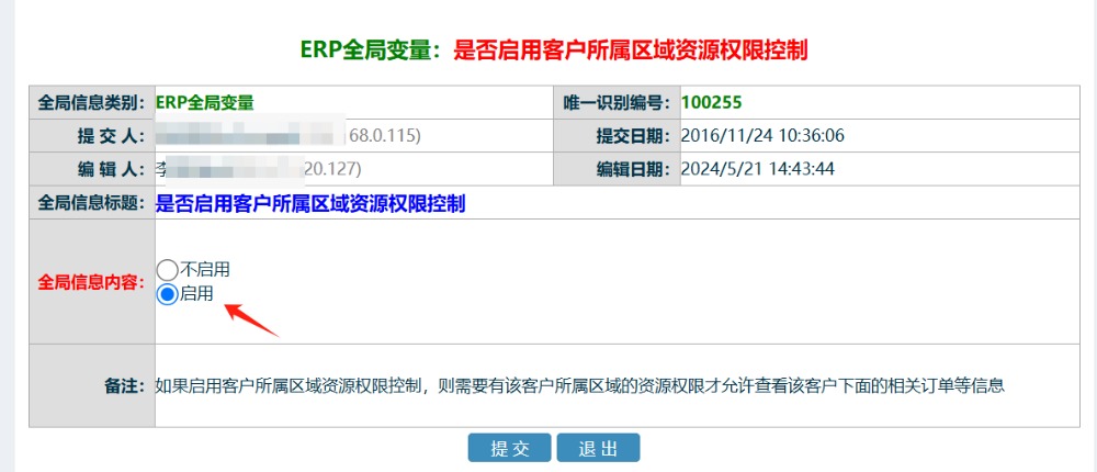 1、设置全局变量,将客户权限开启,操作步骤如下图: