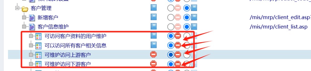 3、设置岗位权限,取消查看所有客户相关权限,如下图所示: