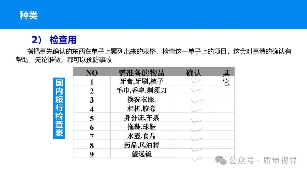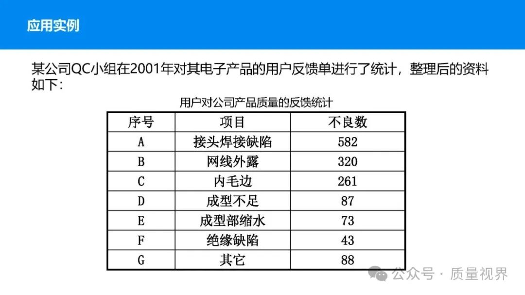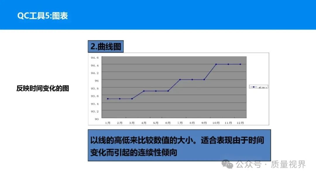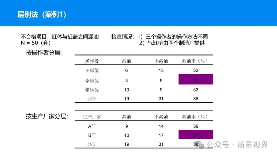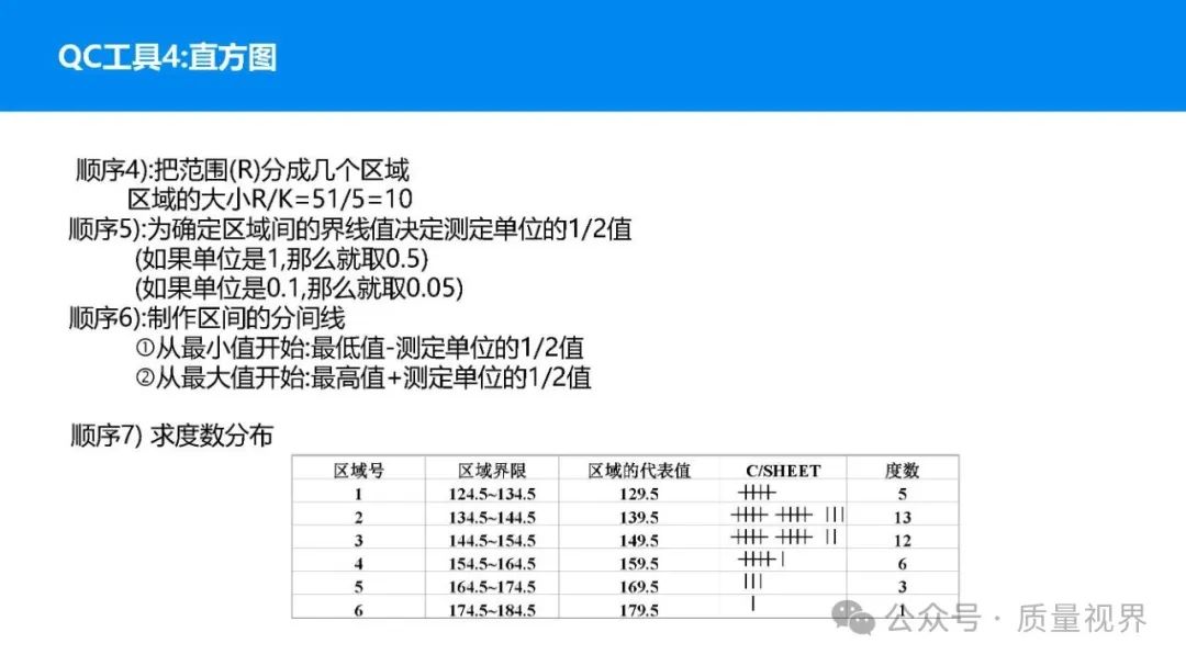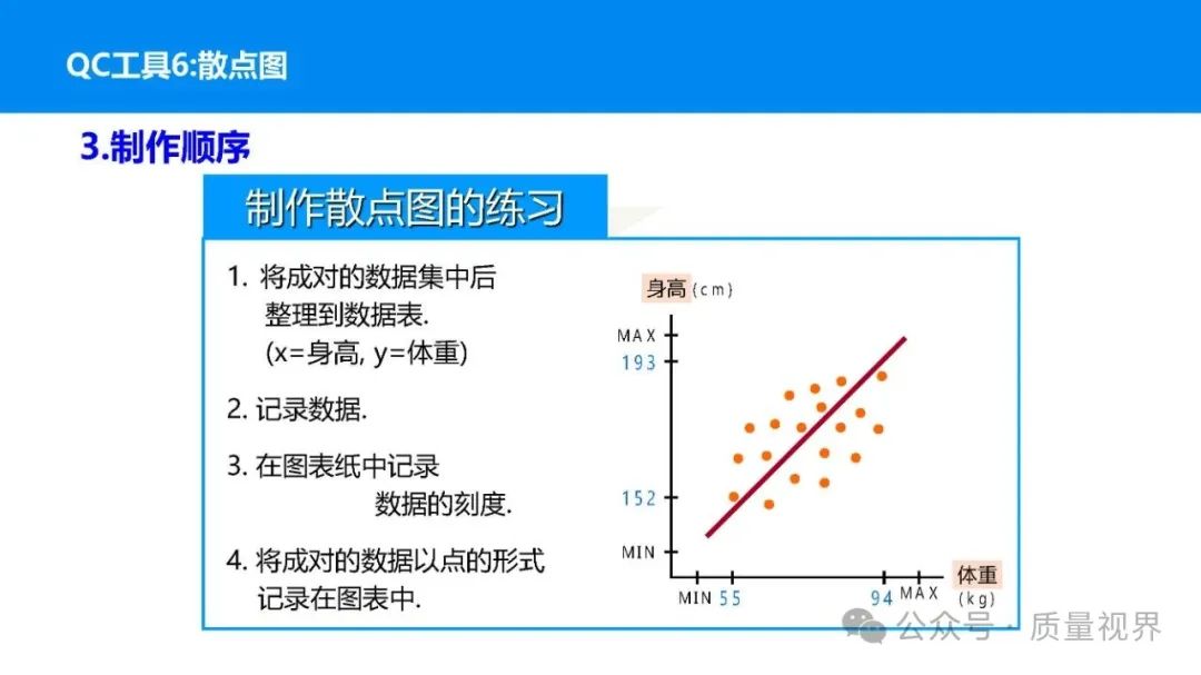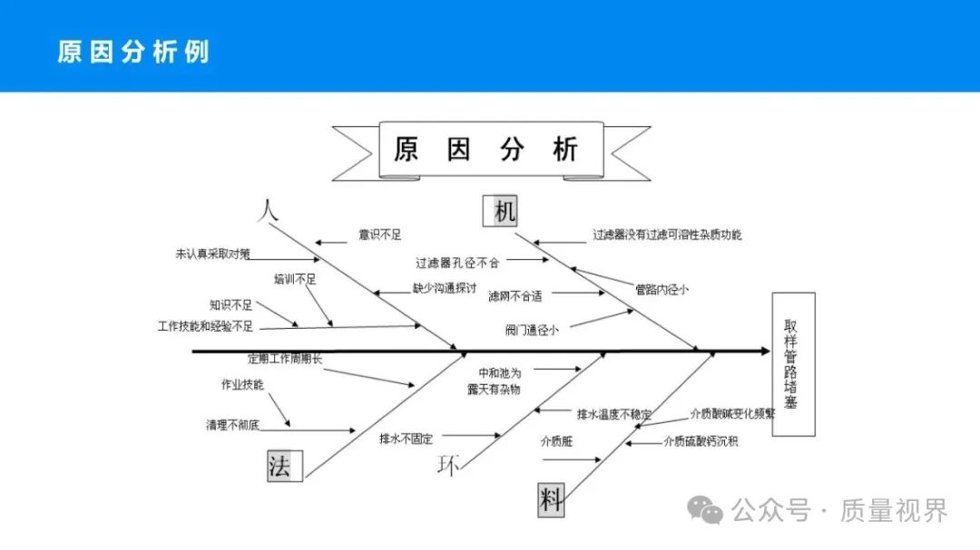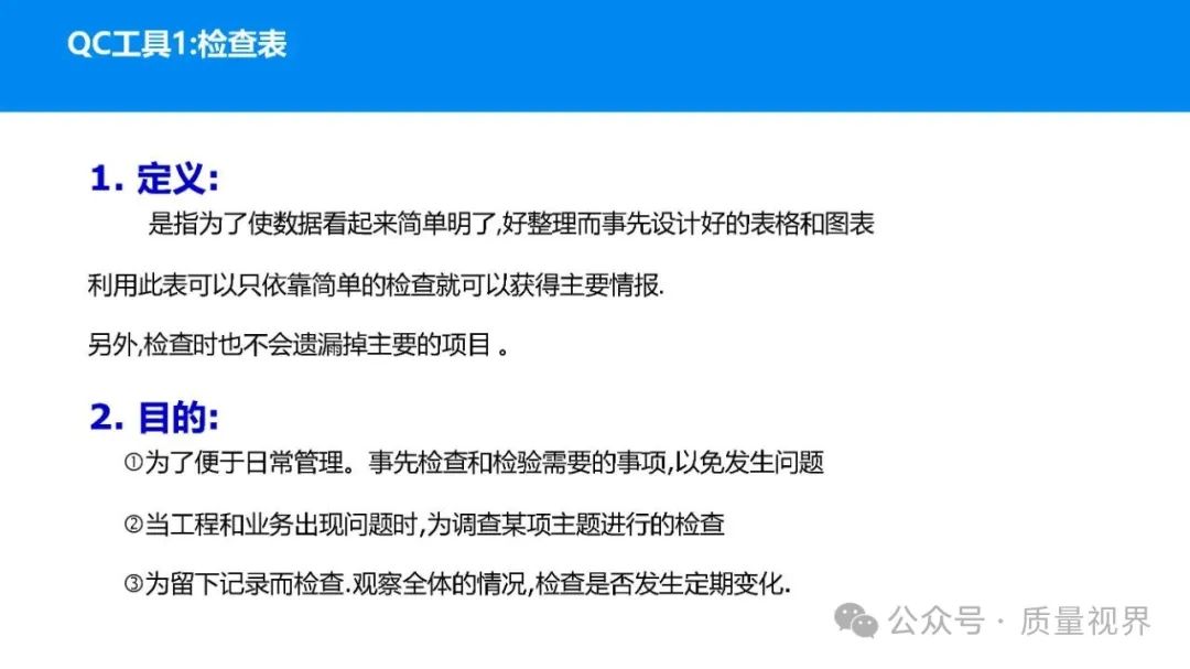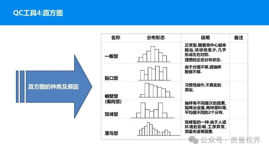 在质量管理领域,七大工具是提升产品质量、优化流程的重要手段。它们操作简便、实用性强,能帮助我们从复杂的数据和现象中找到关键问题,为质量改进提供明确方向。以下将逐一介绍这七大工具。检查表是一种为收集和整理数据而设计的表格,它能让数据收集过程更有条理,避免遗漏关键信息。可以系统地收集特定问题的数据,为后续的分析提供可靠依据。比如在生产车间,可用于记录每天产品的不合格项数量及类型。(二)制作步骤明确收集数据的目的,比如是为了了解某产品的不合格原因分布。确定需要收集的数据项目,如不合格类型、发生时间、发生地点等。设计表格样式,将数据项目合理排列。确定数据收集的周期和负责人。按照表格要求进行数据填写。某电子厂为了解手机屏幕的不合格情况,设计检查表记录每天的不合格类型,如划痕、亮点、暗点等。一周后,通过检查表数据能直观看到划痕问题出现的次数最多,为后续解决该问题提供了数据支持。柏拉图又称排列图,它基于 “关键的少数,次要的多数” 原则,将数据按重要程度排序,以柱状图和折线图结合的形式展示,帮助识别主要问题。能快速找出影响质量的主要因素,让我们把精力集中在关键问题上,提高质量改进的效率。(二)制作步骤确定分析的问题和数据范围,比如某产品的不合格原因及对应数量。对数据进行分类统计,计算各类别的数量和占比。按数量从大到小排序。绘制柱状图,横轴为类别,纵轴为数量;再绘制折线图,纵轴为累计占比。在累计占比 80% 左右的位置画一条横线,横线左侧的类别即为主要问题。某服装加工厂对衬衫的不合格品进行统计,发现线头、尺寸偏差、面料瑕疵、纽扣松动等问题。通过制作柏拉图,发现线头和尺寸偏差的累计占比达到 80%,于是重点针对这两个问题进行改进,有效降低了不合格率。鱼骨图又称因果图,因其形状像鱼骨而得名。它将影响质量的因素按类别进行梳理,找出问题的根本原因。能全面、系统地分析问题产生的原因,避免遗漏,帮助找到根本解决办法,而不是只解决表面问题。(二)制作步骤明确需要分析的质量问题,写在鱼骨的 “鱼头” 位置。确定主要原因类别,通常包括人、机、料、法、环、测等,作为鱼骨的主骨。针对每个主骨,进一步分析次要原因,作为子骨。继续深入分析,找出更具体的原因,直到能采取措施解决为止。对分析出的原因进行筛选,确定根本原因。某食品厂生产的饼干出现口感偏硬的问题,用鱼骨图分析。从人(操作工人烘焙时间控制不当)、机(烤箱温度不稳定)、料(面粉含水量过高)、法(烘焙工艺参数不合理)、环(车间湿度大)、测(温度检测仪器不准)等方面入手,最终发现烤箱温度不稳定和烘焙工艺参数不合理是根本原因。直方图是将数据按一定区间分组,以矩形的高度表示每组数据的频数,从而展示数据的分布状态。能直观地反映数据的分布特征,如数据的集中程度、离散程度、是否存在异常值等,帮助判断生产过程是否稳定。(二)制作步骤收集数据,确定数据的数量,一般建议不少于 50 个。找出数据中的最大值和最小值,计算极差(最大值 - 最小值)。确定组数和组距,组数通常根据数据数量确定,组距 = 极差 ÷ 组数。确定每组的区间范围,注意区间要连续且不重叠。统计每组数据的频数。绘制直方图,横轴为数据区间,纵轴为频数。某机械厂对零件的直径进行测量,得到一批数据。通过绘制直方图,发现数据呈现正态分布,且在标准范围内,说明生产过程稳定。若直方图出现偏态或有数据超出标准范围,则表明生产过程存在问题,需及时调整。控制图是用于监控生产过程是否处于稳定状态的工具,通过设置控制界限,判断过程是否出现异常波动。能及时发现生产过程中的异常情况,以便采取措施进行调整,预防不合格品的产生,保证生产过程的稳定性。(二)制作步骤确定需要监控的质量特性,如产品的尺寸、重量等。收集数据,按时间顺序或批次分组。计算每组数据的平均值(或中位数)和极差(或标准差)。确定控制界限,通常包括中心线(CL)、上控制限(UCL)和下控制限(LCL),一般以 ±3 倍标准差作为控制限。绘制控制图,横轴为样本组序号,纵轴为质量特性值,标注中心线和控制限,并将数据点绘制在图上。分析控制图,若数据点在控制限内且随机分布,说明过程稳定;若出现数据点超出控制限、连续多点在中心线一侧等情况,则表明过程异常。某饮料厂监控瓶装饮料的容量,通过控制图对每小时抽取的样本进行跟踪。当发现连续 3 个数据点在中心线以上且逐渐接近上控制限时,及时检查灌装设备,发现是设备压力异常,调整后恢复正常,避免了大量不合格产品的产生。散布图是用于研究两个变量之间相关关系的图形,通过观察数据点的分布形态,判断变量之间是正相关、负相关、不相关还是非线性相关。能直观地展示两个变量之间的关系,帮助确定它们之间是否存在因果关系或关联程度,为质量改进提供依据。(二)制作步骤确定需要研究的两个变量,如温度和产品合格率。收集成对的数据,一般建议不少于 30 对。建立坐标系,横轴为一个变量,纵轴为另一个变量。将每对数据对应的点绘制在坐标系中。观察数据点的分布形态,判断相关关系。某化工企业研究反应温度与产品纯度的关系,绘制散布图后发现,随着温度的升高,产品纯度先上升后下降,