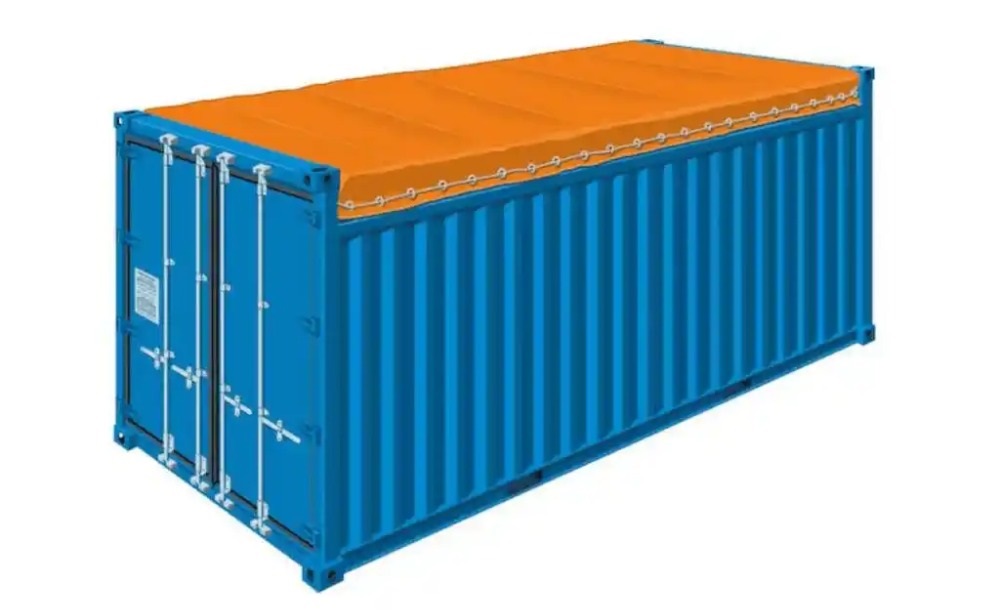 4)开顶箱:箱型代码OT;95码22U1,这种集装箱没有箱顶,可用起重机从上面装卸货物,装运时用防水布覆盖顶部,其水密要求和干货箱一样。适合于装载体积高度的物体,如玻璃板等。
