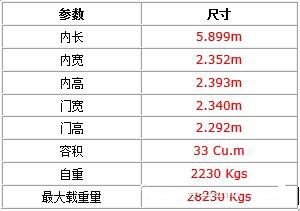 20尺标准集装箱尺寸与规格 20尺标准集装箱6米集装箱 标准集装箱一般都是通用的,其结构特点常为封闭式。所谓的密封集装箱,也就是说该集装箱的四周和顶部都是密封的。从下面的标准集装箱的箱门描述中,我们可以看出不同集装箱之间的差异: 标准集装箱单侧箱门和标准集装两侧箱箱门; 标准集装箱单侧箱门和标准集装箱两侧箱门又分为单块箱门和两块箱门; 标准集装箱单侧箱门和标准集装箱两侧箱门又分为单门和对开门。 ![]() 用途:标准集装箱可以用来装载各种不同类型的普货(干货)。适用于海运、陆运、空运。 ![]() 40尺标准集装箱尺寸与规格 40尺标准集装箱40GP箱,12米标准集装箱 40尺标准集装箱,也可称之为12米集装箱 40GP箱标准集装箱一般都是通用的,其结构特点常为封闭式。所谓的密封集装箱,也就是说该集装箱的四周和顶部都是密封的。从下面的标准集装箱的箱门描述中,我们可以看出不同集装箱之间的差异: 标准集装箱单侧箱门和标准集装两侧箱箱门; 标准集装箱单侧箱门和标准集装箱两侧箱门又分为单块箱门和两块箱门; 标准集装箱单侧箱门和标准集装箱两侧箱门又分为单门和对开门。 ![]() 用途:标准集装箱可以用来装载各种不同类型的普货(干货)。适用于海运、陆运、空运。 ![]() 40尺高柜集装箱尺寸与规格 40尺高柜集装箱40HQ箱,12米超高集装箱 40尺高柜集装箱和40尺标准集装箱结构设计一样,除了在高度方向上比40尺柜标准集装箱高外。和标准尺寸的集装箱最大高度为2591毫米(8’6”)相比,40尺高柜集装箱的高度为2896毫米(9’6”)。40尺高柜有40多英尺长,但是一般都做45尺柜的集装箱。 一些承重能力最多达1000KG的系索环,通常安装在前端梁上、底部横梁和角柱那里! 许多40尺柜的集装箱在前端梁板上有一个凹槽用来固定集装箱上转轴底架。这些凹槽可以对集装箱进行高低的升降。 ![]() 用途:高柜集装箱可以用来装载所有类型的货物(干货)。但是,高柜集装箱特别适合用来运输质量轻、体积长的货物,或者高度高达2.70米的货物。 ![]() 该文章在 2025/8/9 14:21:22 编辑过 |