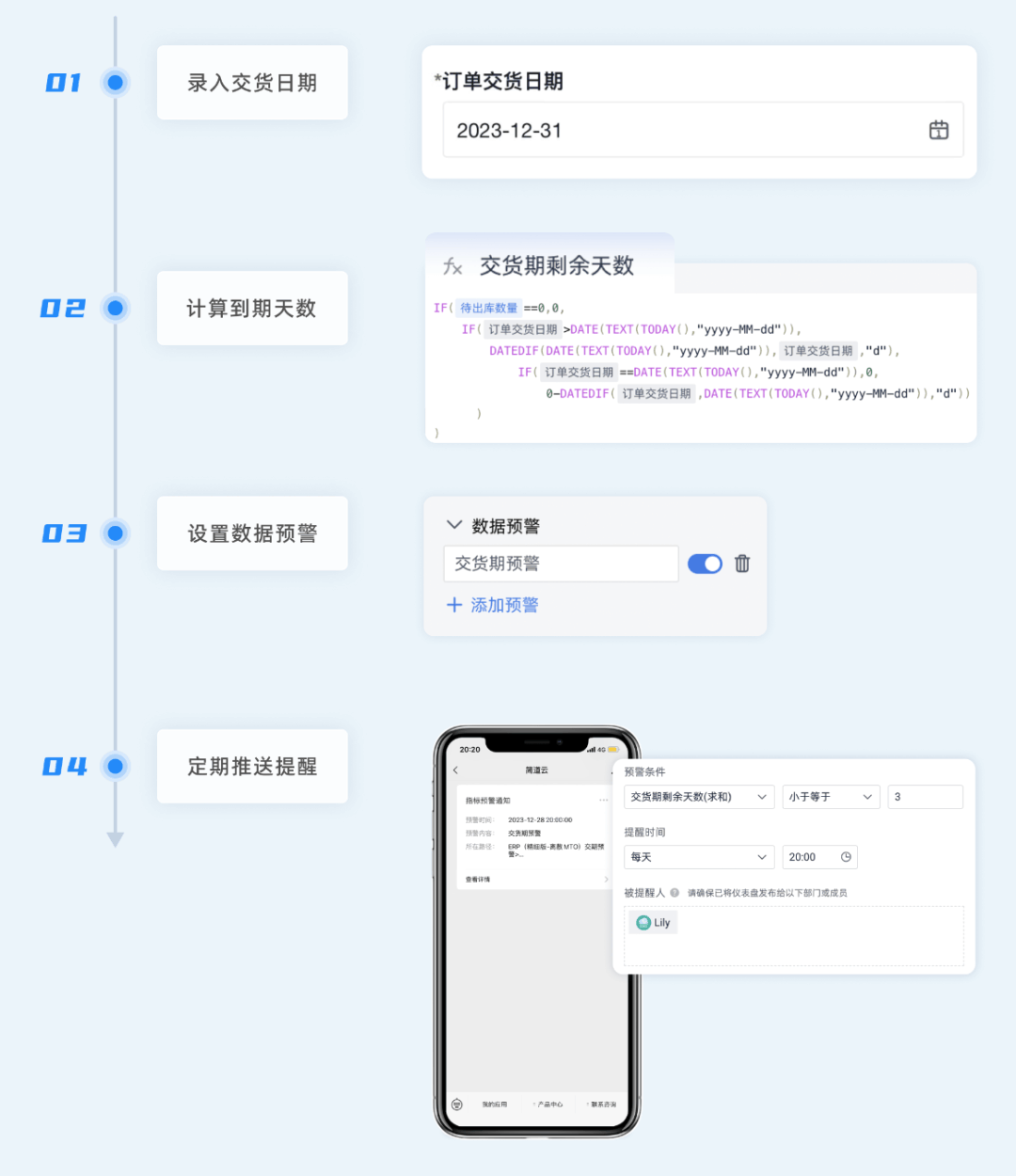 • 采购:交期、价格、物料到货