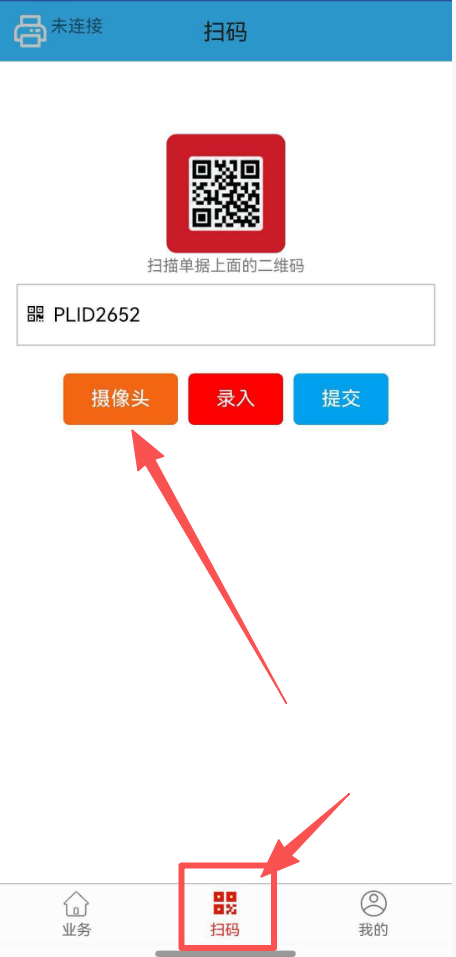 点击中间输入框扫码:点击摄像头扫工单的二维码,注意工单二维码内容格式为:PLIDXXXX格式
