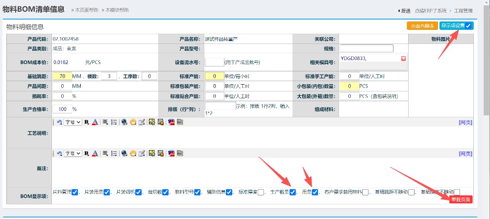 进入界面后,勾上表头右上角的“显示项设置”,将生产/用量按钮勾上,点击重新加载。
