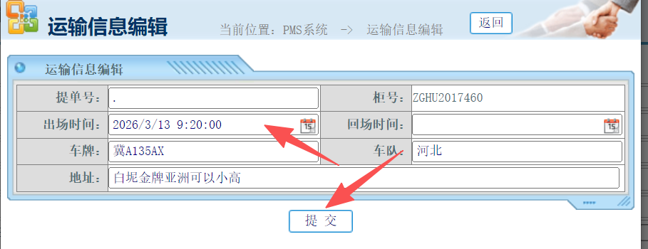 :PMS系统如何修改运输单的出场时间