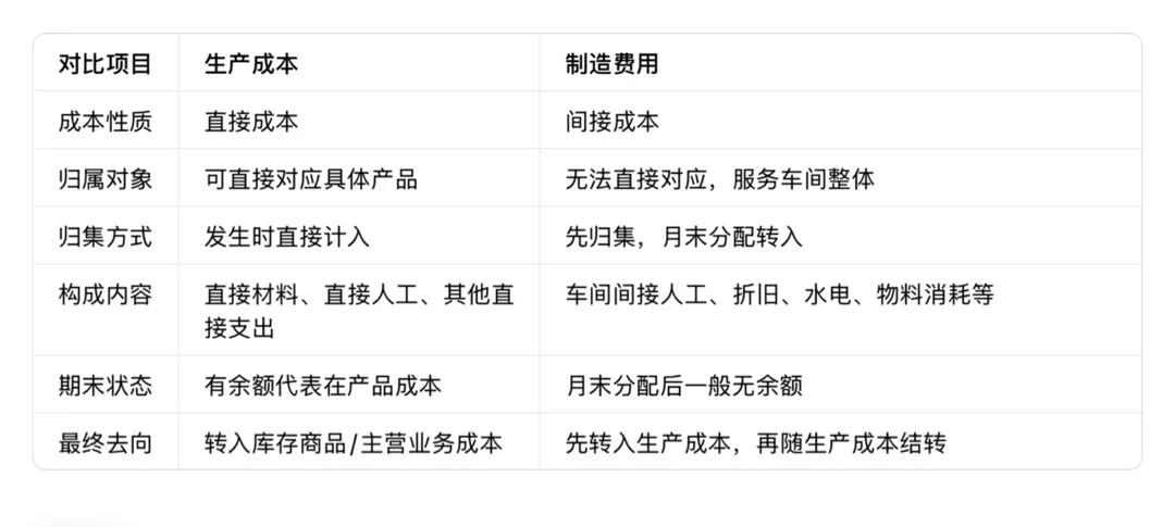二、一张表看懂:生产成本与制造费用的全方位对比