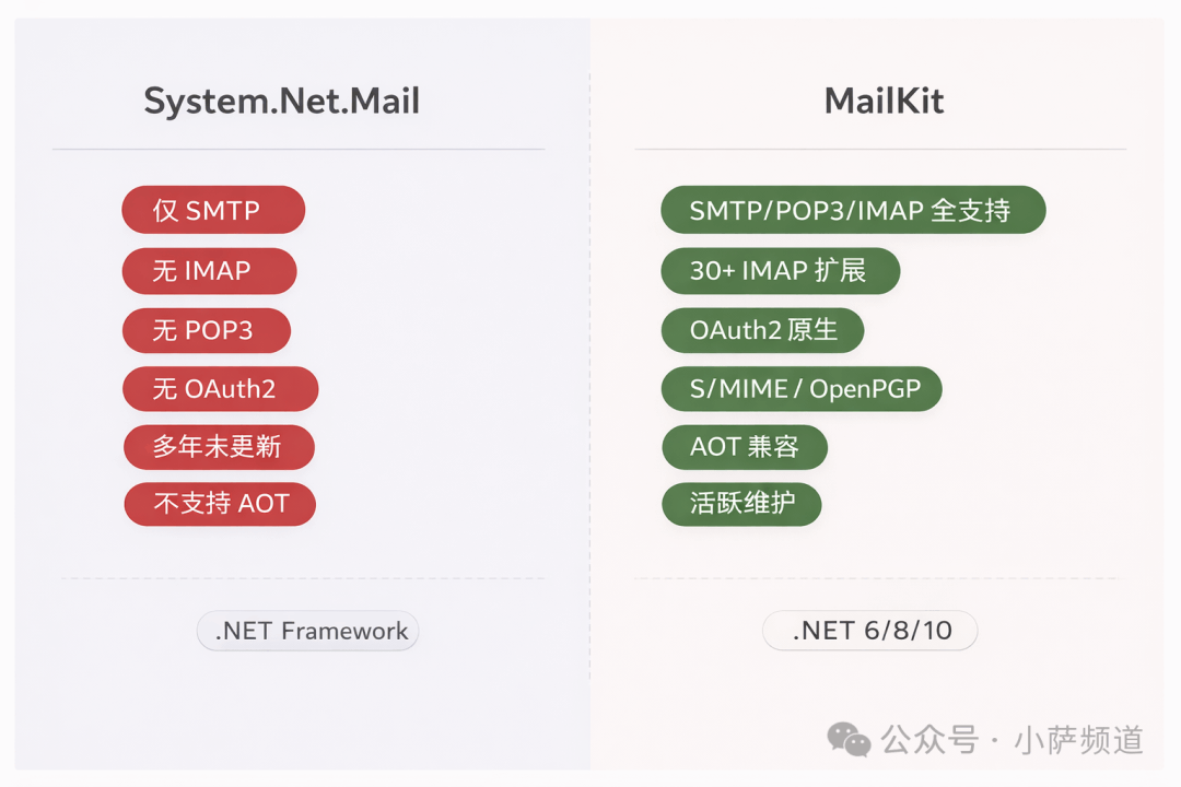 如果你做过 .NET 邮件功能,大概率踩过这些坑: IMAP 收件时服务器突然发了条没预料到的响应,库直接报错崩溃;POP3 下载大邮件时内存暴涨,因为 MIME 解析先把整个消息塞进字符串再慢慢处理;发件时中文标题乱码、附件名变乱码、HTML 邮件格式跑偏;对接 Gmail 时普通密码登录直接被拒,必须上 OAuth2,但大多数库压根不支持;企业邮箱要求 S/MIME 加密签名,库里根本没有这个能力…… 这些问题,MailKit 统统给你解决了。