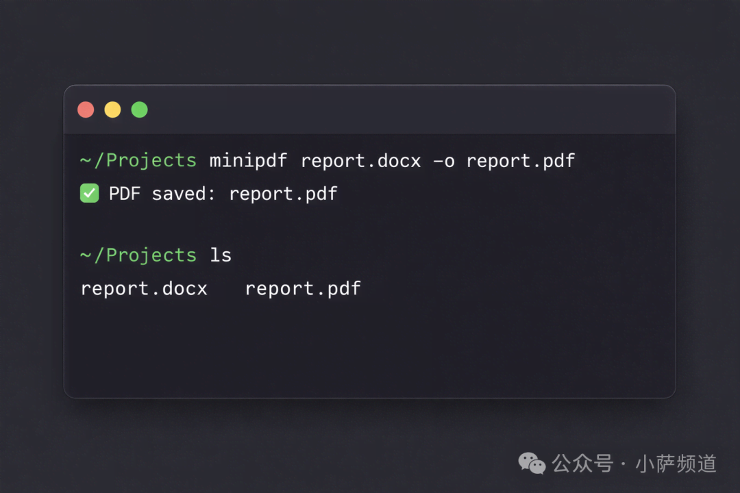 CLI 工具:不服上命令行不想写代码也行。装个 CLI 工具: 然后: 就这些。不需要安装 Office 或 LibreOffice,不需要任何外部依赖。