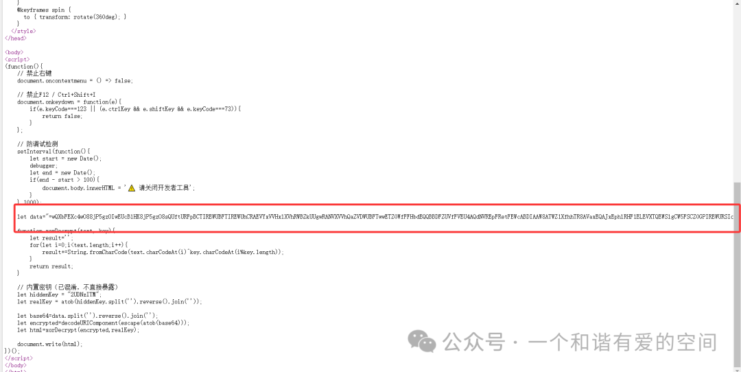 HTML源码加密工具(密钥+公钥版)安全加密您的HTML代码,保护源码不被轻易查看,当然通过一些技术也是可以看到 安全加密 采用Base64编码、代码混淆和公钥密钥技术,有效保护HTML源码不被轻易查看和复制 功能完整 加密后的代码在浏览器中运行效果与原代码完全一致,不影响源码任何功能 简单易用 支持文件上传和代码粘贴,一键加密,快速复制或下载,操作简单便捷 以上一些投机的方法,基本也可以防住大部分人了,各位大佬和大神级另外说。 一、无法右键,无法F12调试,