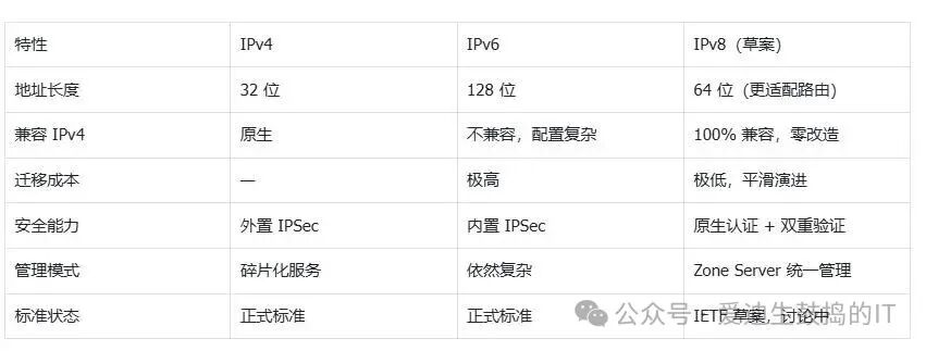 三、IPv4 / IPv6 / IPv8 一张表看懂差距