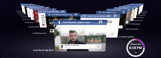 自然,在信息空间中,时间可进可退,因此我们也能浏览和搜索过去。任何信息对象,都可以在“现在”这一时间点加入,之后这条消息就好像掉进时间长河的一片树叶,当即便往“过去”流动。这个信息对象可以是文件、消息、或是传统的网站,而所有这些内容最终会组建成一个内容可搜索的云文件系统。