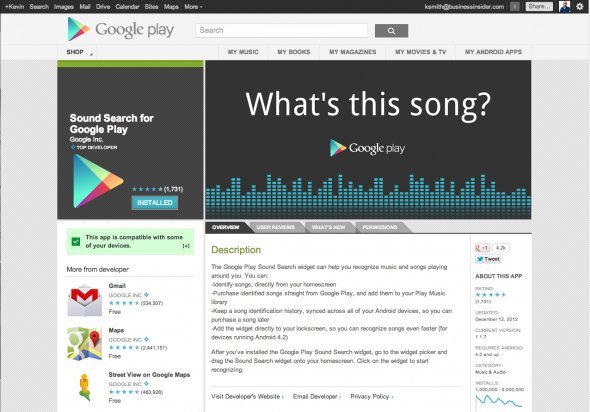 与Shazam(一款音乐识别软件)相类似,Google Sound Search能够告诉用户正在播放的是什么歌曲。