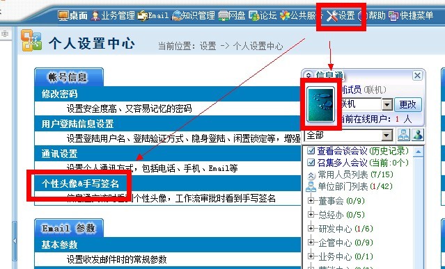 这个是员工个人自行更改信息通中头像的位置