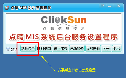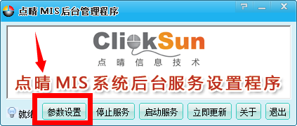 一、打开点晴MIS信息通服务器端后台程序,点击“参数设置”: