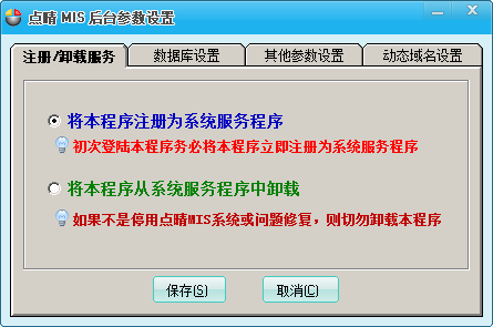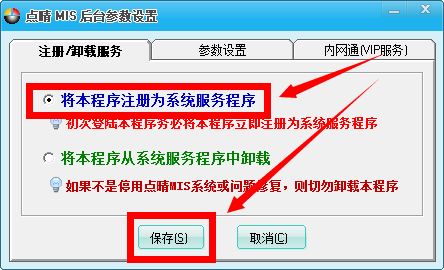 二、在“参数设置”页面点击“将本程序注册为系统服务程序”,之后点击“保存”: