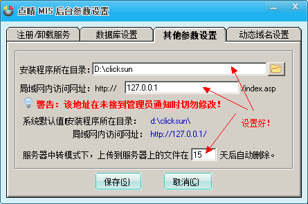 地址2),然后安装在点晴MIS系统所在的服务器上,安装过程在此不作叙述,安装完毕后请按以下步骤设置: