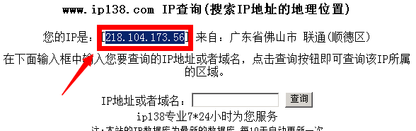 如果是第2、3类用户,需要先判断自己单位到底是否能获取外部真实的动态IP,有一个简单的方法判断,先在服务器上访问网站: