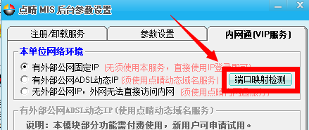 然后点击“点晴内网通(VIP服务)”中的“端口映射检测”: