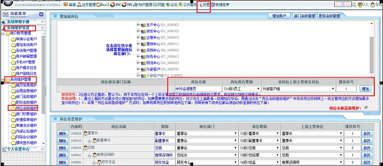 登陆点晴MIS系统【设置】->【系统维护设置】->【系统维护管理】->【岗位名称维护】如图示: