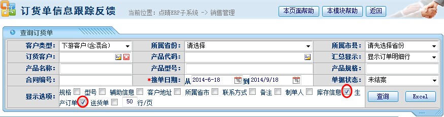 操作步骤:销售管理——订货单信息跟踪;进入页面如下图操作: