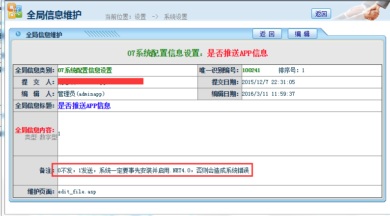 如果按照配置教程开启了APP的相关接收推送新消息,还是无法接收到推送消息,请网管查看OA的全局设置是否开启了新消息推送设置,如图: