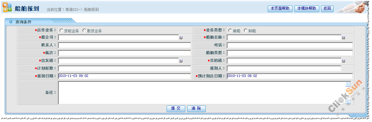 点晴PMS集装箱码头管理信息系统——新增船舶报到单