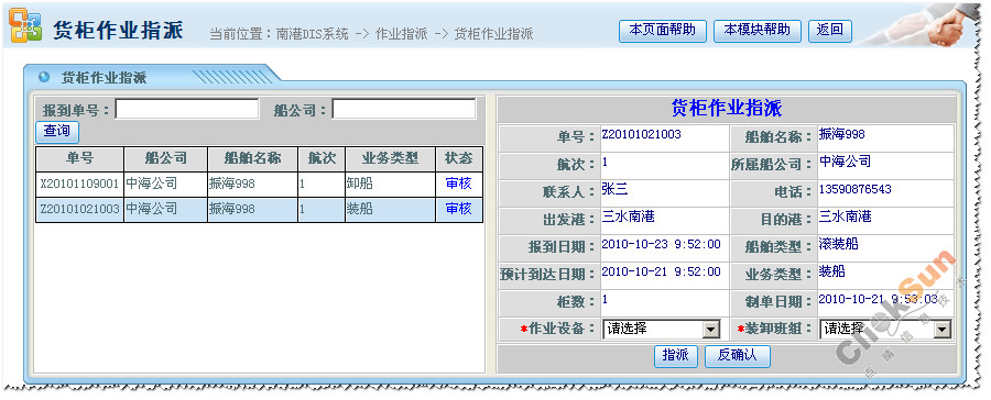 点晴PMS集装箱码头管理信息系统——货柜作业指派