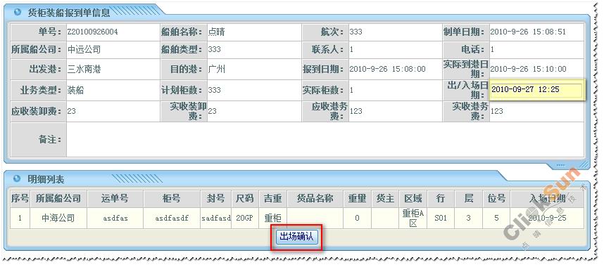 点晴PMS集装箱码头管理信息系统——装船出场确认