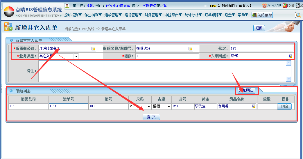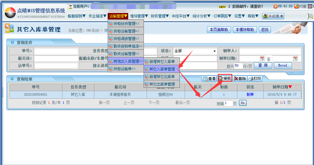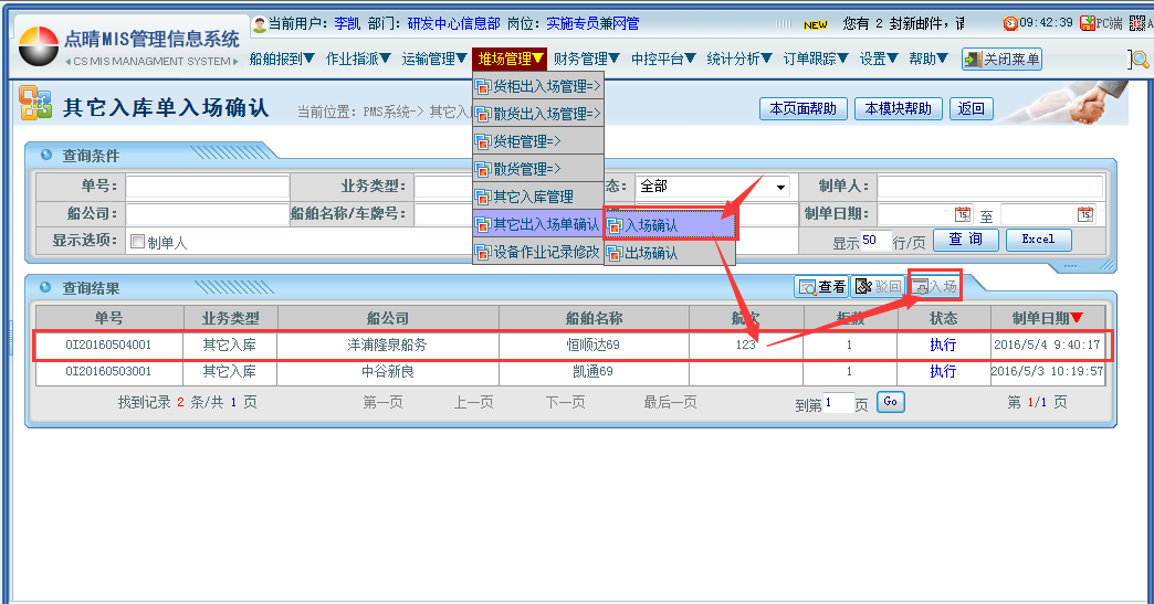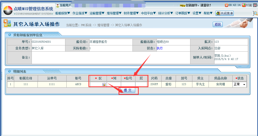 点晴PMS集装箱码头管理信息系统——货柜其他入库操作指引
