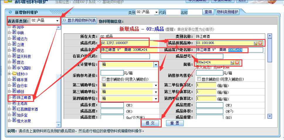 操作:产品管理——产品添加——选择品种——录入对应品种的名称以及单位——点击“提交”