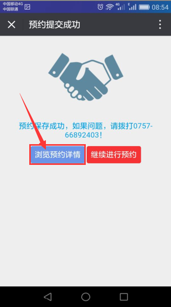 1预约成功后直接在页面点击“浏览预约详情”按钮进入查看: