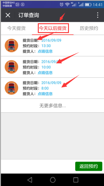 2、系统正式上线后,建议代理商让提货人员进行预约,并同时告诉提货人代理商的发运标识。