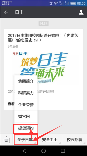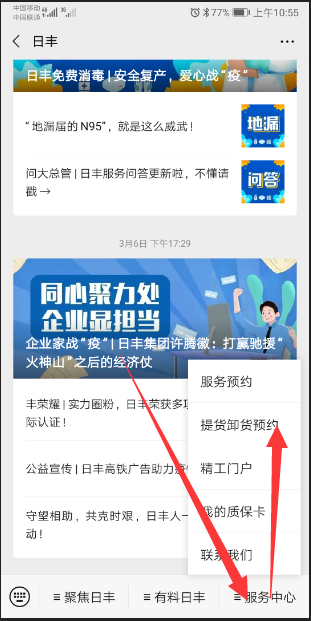 1进入微信公众号——关于日丰——提货预约——选择已预约的图标(红色):