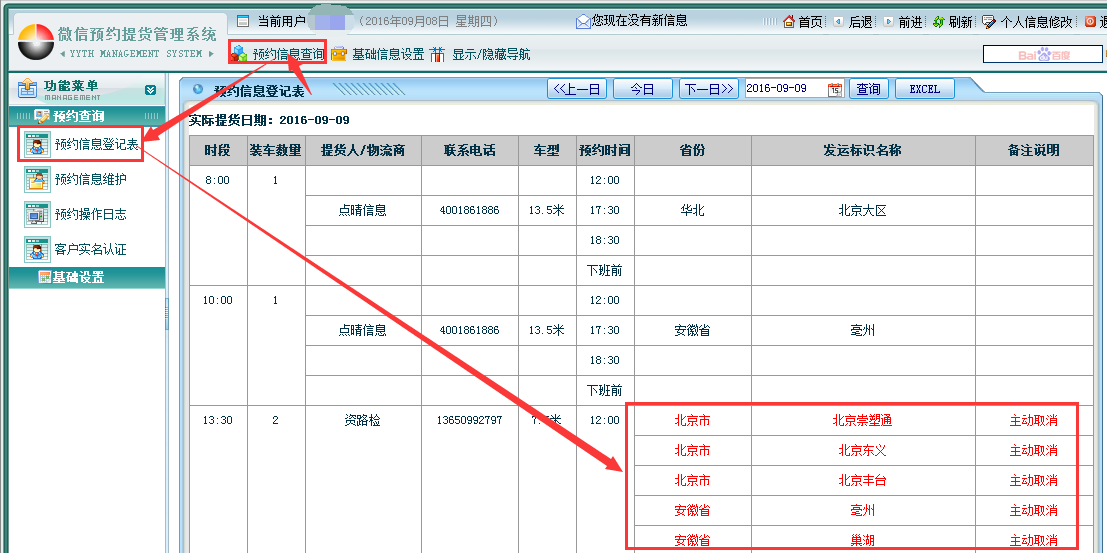 1、目前系统处于测试阶段,仅供试用。20161012日正式运行,届时取消人工电话预约提货的方式。