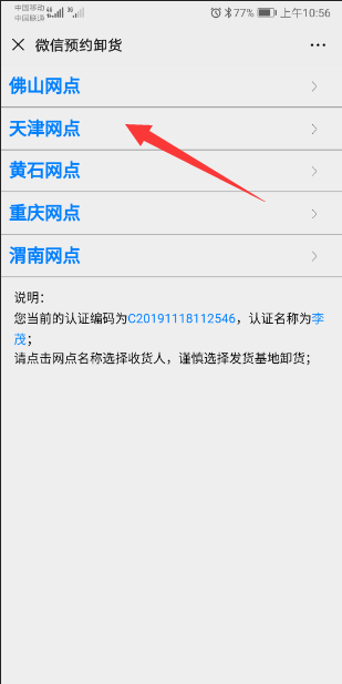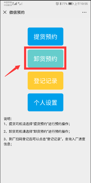 1进入页面选择卸货预约按钮——点击选择正确的网点: